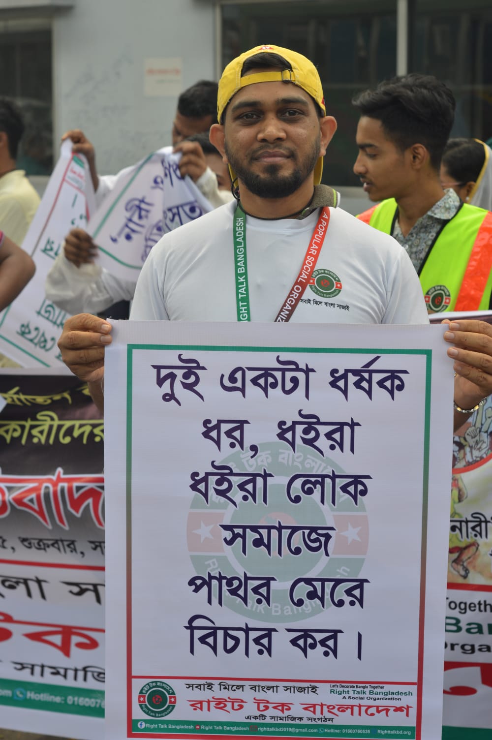 মাগুরার ৮বছরের শিশু আছিয়ার ধর্ষকের প্রকাশ্যে জনসম্মুখে ফাঁসির দাবি জানিয়ে ” আমার সোনার বাংলায় ধর্ষকদের ঠাঁই নাই” এমন অসংখ্য ধর্ষণবিরোধী নানা স্লোগান ব্যবহার করে সকল নারী ও শিশু নির্যাতনের প্রতিবাদে মানববন্ধন ও সমাবেশ করেছে সামাজিক সংগঠন রাইট টক বাংলাদেশ।