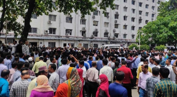 এর আগে, সোমবার (২৬ মে) টানা তৃতীয় দিনের মতো সচিবালয়ের প্রধান ফটক আটকে বিক্ষোভ করেন বিভিন্ন মন্ত্রণালয় ও বিভাগের কর্মচারীরা। বিক্ষোভ শেষে মঙ্গলবারের কর্মসূচি ঘোষণা করেন তারা।