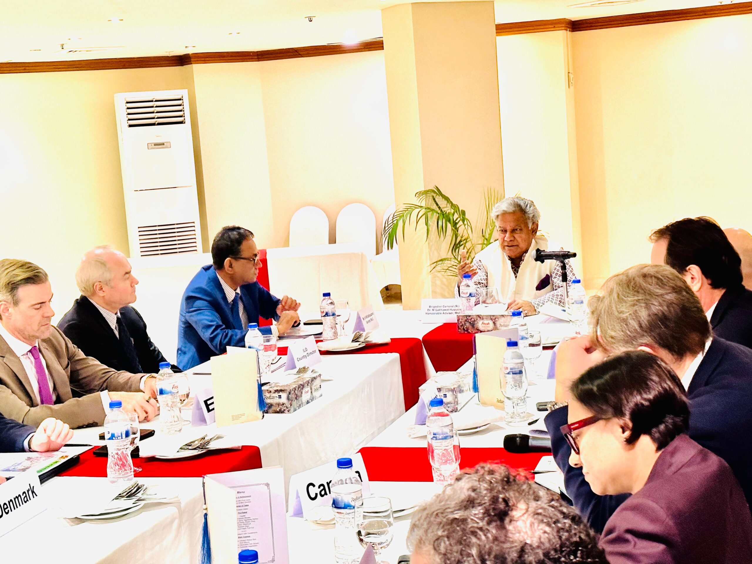 আগামী ১০ থেকে ২০ মার্চ সুইজারল্যান্ডের জেনেভায় অনুষ্ঠিতব্য আন্তর্জাতিক শ্রম সংস্থার (আইএলও) ৩৫৩তম অধিবেশনের পূর্বে শ্রম ও কর্মসংস্থান মন্ত্রণালয়ের কর্মকর্তাদের সঙ্গে বিভিন্ন দেশের দূতাবাসের কর্মকর্তাদের শ্রম ইস্যুতে এ অনানুষ্ঠানিক আলোচনায় শ্রম ও কর্মসংস্থান মন্ত্রণালয়ের সচিব ও অন্যান্য ঊর্ধ্বতন কর্মকর্তাগণ উপস্থিত ছিলেন।