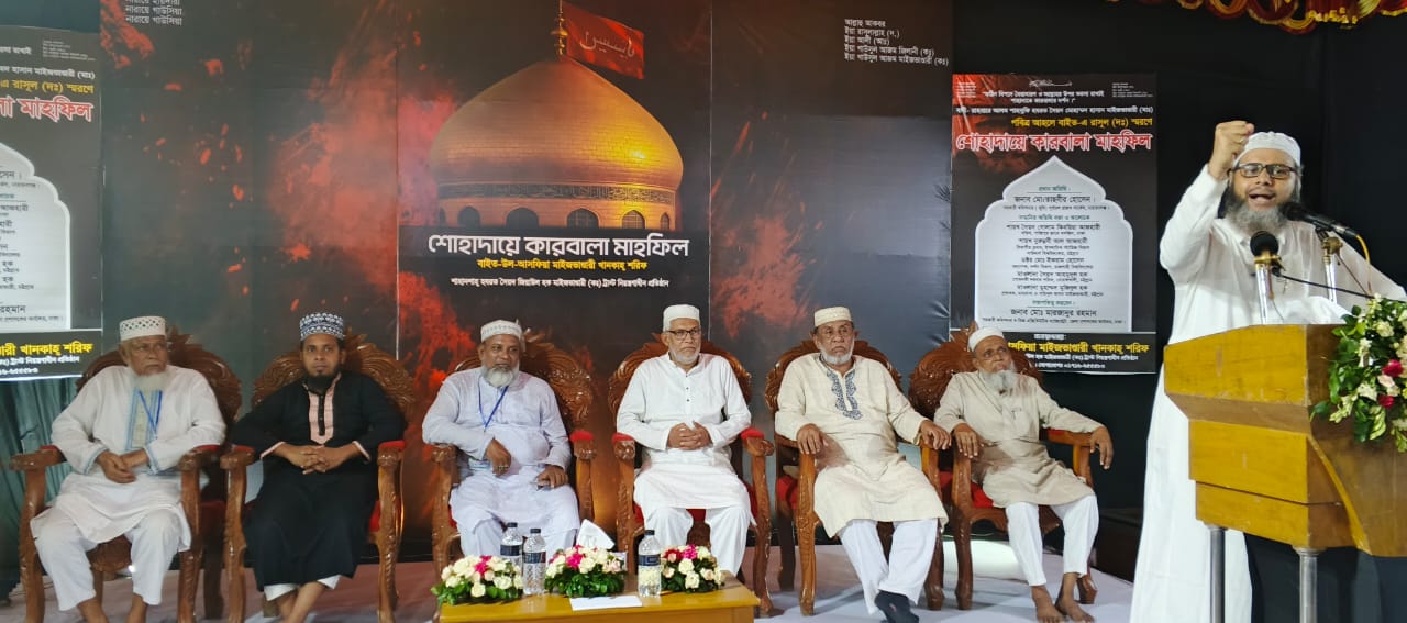 আহলে বাইতের রাসুল (সাঃ) স্মরণে শোহদায়ে কারবালা মাহফিল অনুষ্ঠিত হয়েছে। শুক্রবার সন্ধ্যার দিকে রাজধানীর মিরপুরে অবস্থিত হযরত শাহ আলী বোগদাদী (রঃ) এর মাজার প্রাঙ্গণে এই মাহফিল অনুষ্ঠিত হয়। বিকেল ৩ টা থেকে রাত ৯ টা পর্যন্ত শাহানশাহ হযরত সৈয়দ জিয়াউল হক মাইজভাণ্ডারী (ক.) ট্রাস্ট’র নিয়ন্ত্রনাধীন প্রতিষ্ঠান ঢাকায় বাইত উল আসফিয়া মাইজভাণ্ডারী খানকাহ শরিফ’র ব্যবস্থাপনায় “শোহদায়ে কারবালা মাহফিল-২০২৫” উপলক্ষে আলোচনা সভা ও মিলাদ মাহফিল অনুষ্ঠিত হয়।