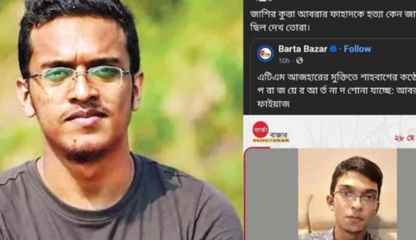 সদ্য কারামুক্ত জামায়াত নেতা এটিএম আজহারের মুক্তিকে কেন্দ্র করে শাহবাগ নিয়ে মন্তব্য করেন বুয়েটে ছাত্রলীগের হাতে নির্মমভাবে হত্যাকাণ্ডের শিকার আবরার ফাহাদের ছোটভাই আবরার ফাইয়াজ।