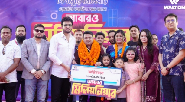 বার বাংলাদেশের টেক জায়ান্ট ওয়ালটনের তৈরি ইউরোপের ঐতিহ্যবাহী এসিসি ব্র্যান্ডের এসি কিনে মিলিয়নিয়ার হয়েছেন খুলনার খালিশপুরের জুয়েলারি ব্যবসায়ি মিঠুন দত্ত। পেলেন ১০ লাখ টাকা। দেশব্যাপী চলমান ওয়ালটন ডিজিটাল ক্যাম্পেইন সিজন-২২ এর আওতায় কিস্তিতে এসি কিনে ১০ লাখ টাকা পাওয়ায় আনন্দের জোয়ারে ভাসছে মিঠুন দত্তের পরিবার।
