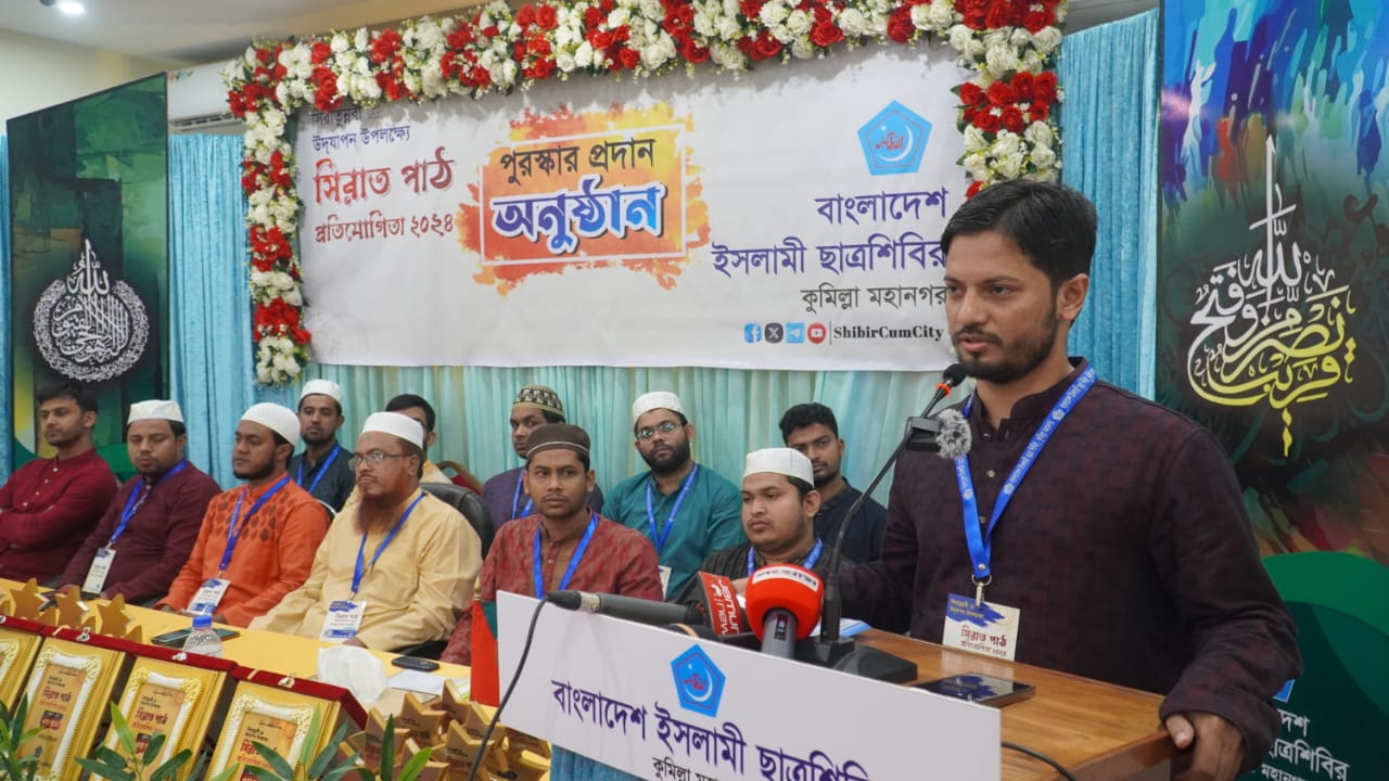 কুমিল্লা মহানগর শাখার উদ্যোগে সিরাত পাঠ প্রতিযোগিতার পুরস্কার প্রদান অনুষ্ঠানে প্রধান অতিথি হিসেবে উপস্থিত ছিলেন বাংলাদেশ ইসলামী ছাত্রশিবিরের সেক্রেটারি জেনারেল জাহিদুল ইসলাম