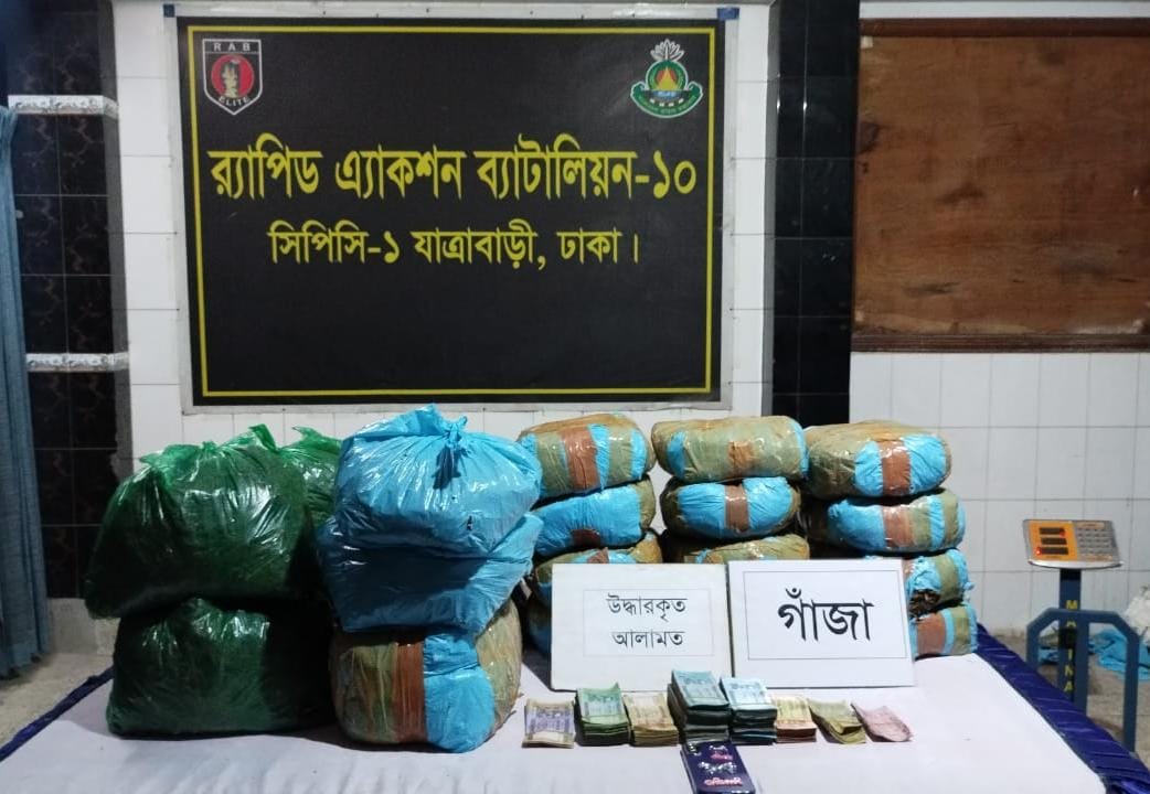 রাজধানীর ডেমরায় র্যাব -১০ এর অভিযানে ৪৬.৫ কেজি গাঁজাসহ এক নারী মাদক ব্যবসায়ীকে গ্রেফতার করা হয়েছে। উদ্ধার গাজার মূল্য আনুমানিক ১৪ লক্ষ টাকা। গ্রেফতার ওই নারীর নাম নাম শিল্পী আক্তার (৩৮)। গত বুধবার (৬ আগস্ট) দিবাগত রাতে গোপন সংবাদের ভিত্তিতে ডেমরা থানাধীন বামৈল এলাকার একটি বাড়ি থেকে তাকে গ্রেফতার করা হয়। এ সময় গাঁজার পাশাপাশি মাদক ক্রয়-বিক্রয়ের নগদ ২ লক্ষ টাকাও জব্দ করা হয়।