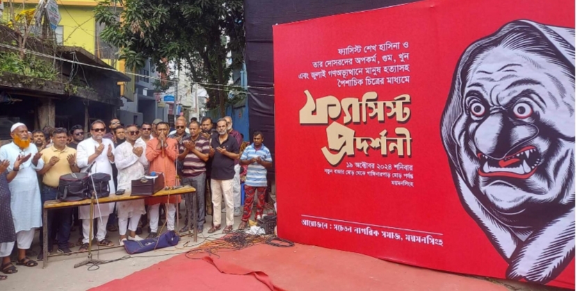 সাবেক প্রধানমন্ত্রী শেখ হাসিনা ও আওয়ামী দোসরদের নানা অপকর্ম, গুম, খুন ও নির্যাতনের তিন শতাধিক আলোকচিত্র নিয়ে ফ্যাসিষ্ট প্রদর্শনী করেছে সচেতন নাগরিক সমাজ এ সময় প্রতিবাদী গান, কবিতা আবৃত্তি ও বক্তব্যের মাধ্যমে ফ্যাসিস্ট দোসরদের দৃষ্টান্তমূলক বিচার দাবি করা হয়। শনিবার(১৯ অক্টোবর) সকাল ১১টা থেকে বেলা ১টা পযর্ন্ত টানা দুই ঘন্টাব্যাপী ময়মনসিংহ নগরীর শহীদ ফিরোজ-জাহাঙ্গীর চত্বরের রামবাবু সড়কে এই প্রদর্শনী অনুষ্ঠিত হয়। ফ্যাসিস্ট পলায়নের দুই মাস উপলক্ষ্যে সচেতন নাগরিক সমাজের ব্যানারে আয়োজিত এই প্রদর্শনীতে জুলাই গনঅভ্যুত্থানে মানুষ হত্যাসহ পৈশাচিক চিত্রের মাধ্যমে এই প্রদর্শনী করা হয়। এতে শেখ হাসিনাসহ জাতীয় ও স্থানীয় পর্যায়ের ফ্যাসিস্ট দোসরদের ক্যাপশন সম্বলিত ছবি স্থান পায়।