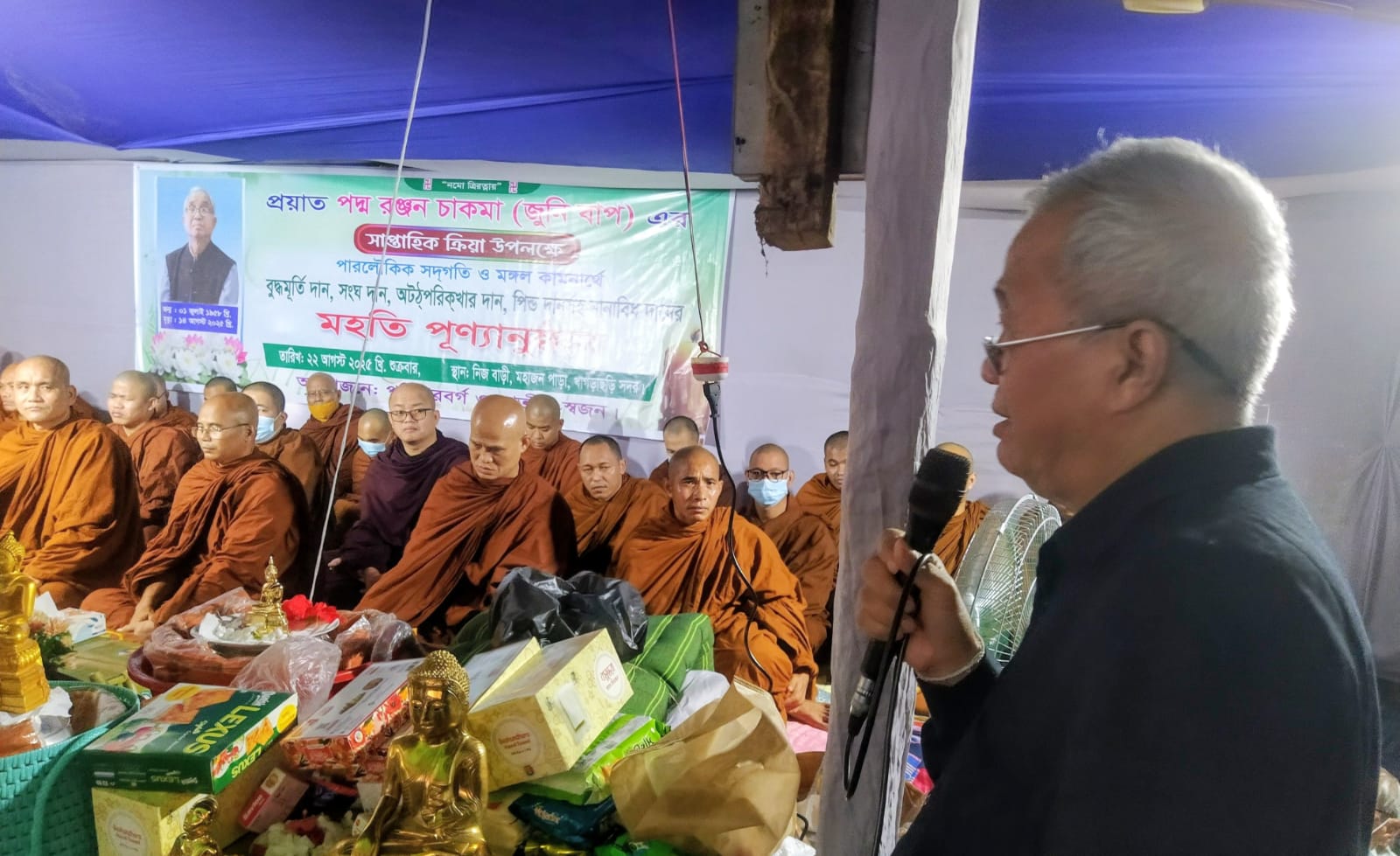 অনুষ্ঠানে বাবু পদ্মরঞ্জন চাকমার পুত্র, সরকারি কর্মকর্তা নিপুন চাকমা, পিতার স্মৃতিচারণ করে বক্তব্য প্রদান করেন। এসময় উপস্থিত ছিলেন কাটাছড়ি বনবিহারের অধ্যক্ষ ইন্দ্র গুপ্ত মহাস্থবির, আনন্দ মিত্র মহাস্থবির, মৈত্রীপুর অরণ্য কুটিরের বিমলানন্দ মহাস্থবির, আর্যপুর বনবিহারের আর্য বোধি মহাস্থবিরসহ অন্যান্য বিশিষ্ট ভিক্ষু ও ধর্মীয় ব্যক্তিবর্গ।