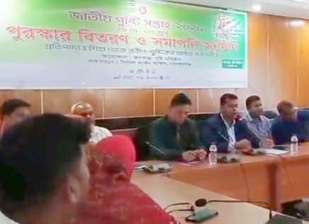 নারায়ণগঞ্জ সিভিল সার্জন কার্যালয়ে জাতীয় পুষ্টি সপ্তাহ ২০২৫ (২৮মে–০৩জুন) উপলক্ষে ৩ জুন মঙ্গলবার সকালে পুষ্টি প্রতিষ্ঠান এর আয়োজনে নারায়ণগঞ্জ সিভিল সার্জন অফিসের তত্ত্বাবধানে পুরস্কার বিতরণ ও সমাপনী অনুষ্ঠানের আয়োজন করা হয় ।