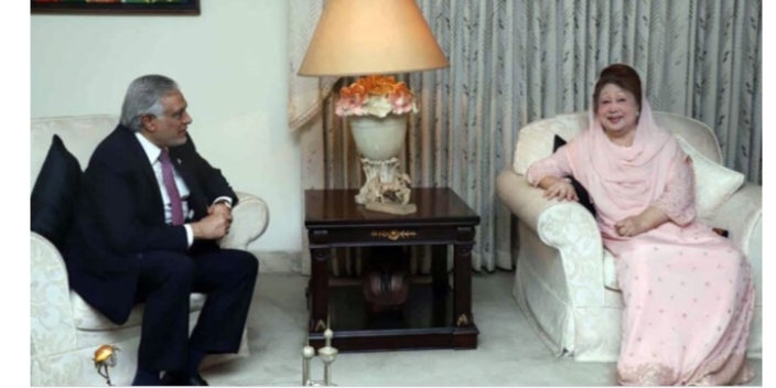 বিএনপি চেয়ারপারসন খালেদা জিয়ার সঙ্গে সাক্ষাৎ করেছেন পাকিস্তানের উপপ্রধানমন্ত্রী ও পররাষ্ট্রমন্ত্রী ইসহাক দার।