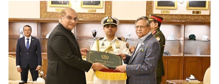 বাংলাদেশে নিযুক্ত পাকিস্তানের নতুন হাইকমিশনার ইমরান হায়দার মঙ্গলবার বঙ্গভবনে রাষ্ট্রপতি মোহাম্মদ সাহাবুদ্দিনের কাছে তার পরিচয়পত্র পেশ করেন।