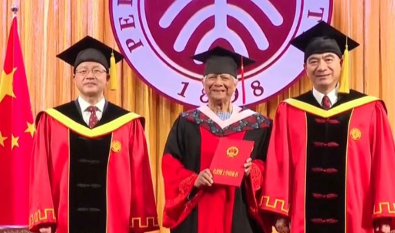 বেইজিংয়ে পিকিং বিশ্ববিদ্যালয় সম্মেলন কক্ষে আয়োজিত এক অনুষ্ঠানে বাংলাদেশের প্রধান উপদেষ্টাকে এই সম্মানসূচক ডিগ্রি প্রদান করা হয়।