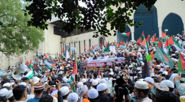 আজ শুক্রবার ১১ই এপ্রিল,বিভিন্ন ইসলামী দল ও সংগঠনের ব্যানারে আয়োজিত বিক্ষোভ সমাবেশ ও মিছিল থেকে ফিলিস্তিনের জনগণের প্রতি সংহতি জানানো হয় এবং আন্তর্জাতিক সম্প্রদায়কে ইসরায়েলের ওপর চাপ প্রয়োগ করে গণহত্যা বন্ধে কার্যকর পদক্ষেপ গ্রহণের আহ্বান জানানো হয়।