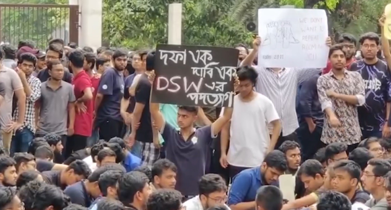 ৪. উপরোক্ত ১ নম্বর এবং ২ নম্বর দাবি শনিবার (৩০ মার্চ) সকাল ৯টার মধ্যে বাস্তবায়ন করা না হলে আমরা সব ব্যাচের শিক্ষার্থীরা ডিএসডাব্লু’র পদত্যাগ চাই।