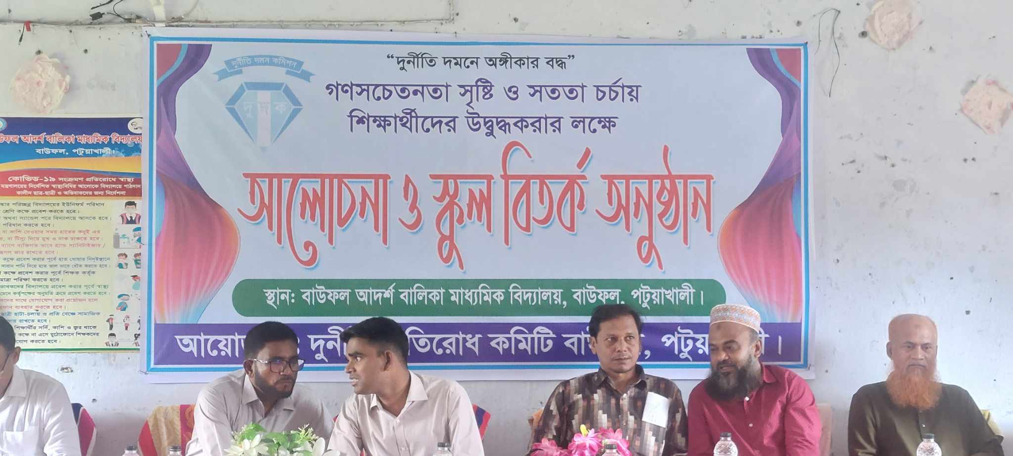বাউফলে দুর্নীতির বিরুদ্ধে গনসচেতনতা সৃষ্টির  লক্ষে আলোচনা ও স্কুল বির্তক অনুষ্ঠিত