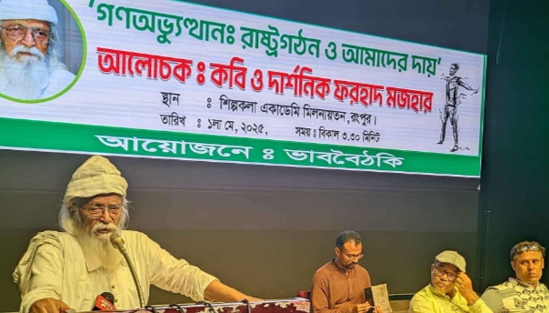 বৃহস্পতিবার (১ মে) সন্ধ্যায় রংপুর নগরীর শিল্পকলা একাডেমি মিলনায়তনে ভাববৈঠকী আয়োজিত ‘গণঅভ্যুত্থান: রাষ্ট্র গঠন ও আমাদের দায়’ শীর্ষক আলোচনা সভায় প্রধান অতিথির বক্তব্যে তিনি এ প্রশ্ন তোলেন।ফরহাদ মজহার বলেন, সাম্য, মানবিক ন্যায় বিচারসহ তিনটা নীতি কীভাবে প্রতিষ্ঠিত করা যায়, কিংবা প্রাতিষ্ঠানিক করা যায়, তার জন্য আমরা লড়াই করি। কিন্তু আওয়ামী লীগ এসে দিল্লির প্রয়োজনে আমাদের ওপর চাপিয়ে দিল ধর্মনিরপেক্ষতা, সমাজতন্ত্র ও জাতীয়তাবাদ। এগুলো আমাদের দাবি ছিল না। এই যে চাপিয়ে দেওয়া তিনটা তথ্যের মধ্যে সমাজতন্ত্র ও জাতীয়তাবাদ একত্রে হলে এইটাকে বলে ফ্যাসিবাদ। এটা হিটলারও বিশ্বাস করত। জার্মান জাতীয়তাবাদ, বাংলাদেশে বাঙালি জাতীয়তাবাদ। জেনেশুনে ফ্যাসিস্ট সংবিধান আমরা রাখছি। এই জুলাই আন্দোলন, গণঅভ্যুত্থানের পরও আমরা এই সংবিধান বাতিল করতে পারি নাই। এই দায় কার। আমরাও দায়ী।