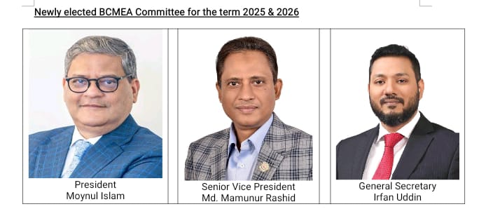 বাংলাদেশ সিরামিক ম্যানুফ্যাকচারার্স অ্যান্ড এক্সপোর্টার্স অ্যাসোসিয়েশন (বিসিএমইএ)’র ২০২৫ এবং ২০২৬ দ্বি-বার্ষিক মেয়াদের নির্বাচনে মইনুল ইসলাম-প্রেসিডেন্ট, মো. মামুনুর রশীদ এফসিএমএ-সিনিয়র ভাইস প্রেসিডেন্ট ও ইরফান উদ্দীন-জেনারেল সেক্রেটারী নির্বাচিত হয়েছেন।