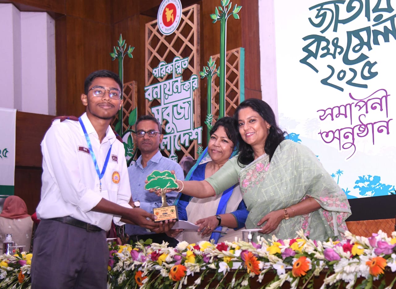 অনুষ্ঠানে উপদেষ্টা শিক্ষার্থীদের গাছ চেনা, রচনা ও চিত্রাঙ্কন প্রতিযোগিতায় বিজয়ীদের মাঝে এবং নির্বাচিত স্টল মালিক ও জাতীয় বৃক্ষরোপণ ও বন্যপ্রাণী সংরক্ষণে অবদান রাখা ব্যক্তিদের মাঝে পুরস্কার ও সনদপত্র বিতরণ করেন।