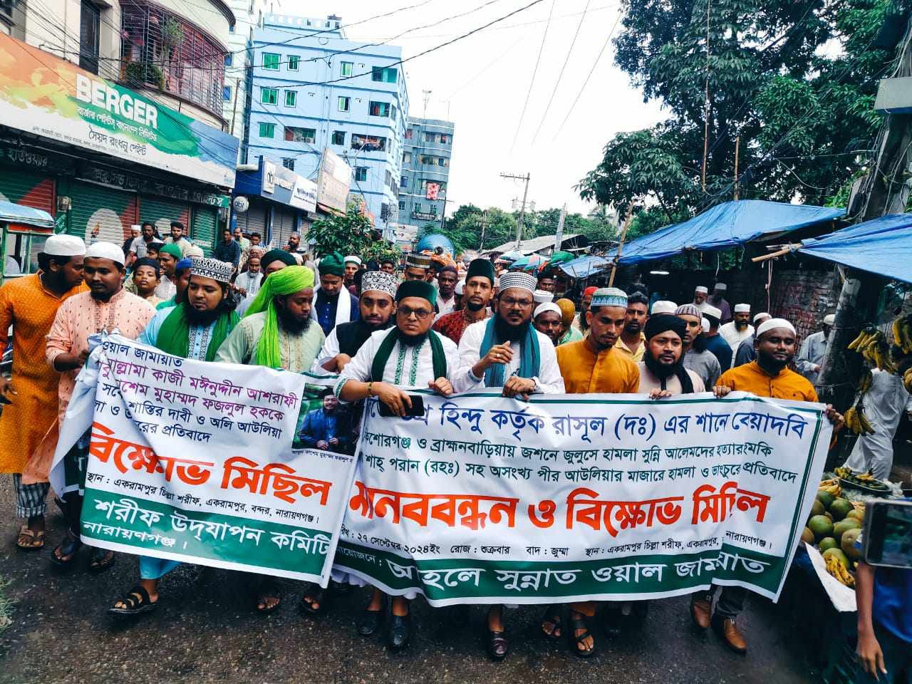 নারায়ণগঞ্জ বন্দরে ২৭ সেপ্টেম্বর শুক্রবার বাদ জুমা ভারতের বিজেপি নেতা হযরত মুহাম্মদ (সাঃ) কে কটুক্তি করায় আহলে সুন্নাত ওয়াল জামায়াত প্রতিবাদ সমাবেশ ও বিক্ষোভ মিছিল বের করেন।