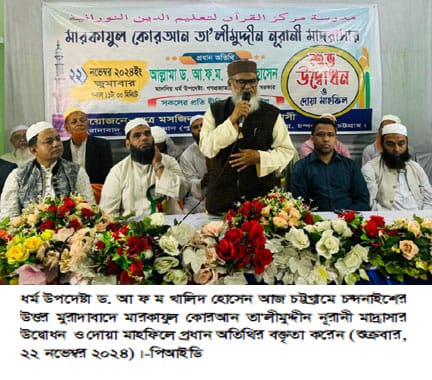 আজ সকালে চট্টগ্রামের চন্দনাইশ উপজেলার উত্তর মুরাদাবাদে মারকাযুল কুরআন তা’লীমুদ্দীন নূরানী মাদ্রাসার শুভ উদ্বোধন ও দোয়া মাহফিল অনুষ্ঠানে প্রধান অতিথি বক্তৃতায় তিনি এসব কথা বলেন।