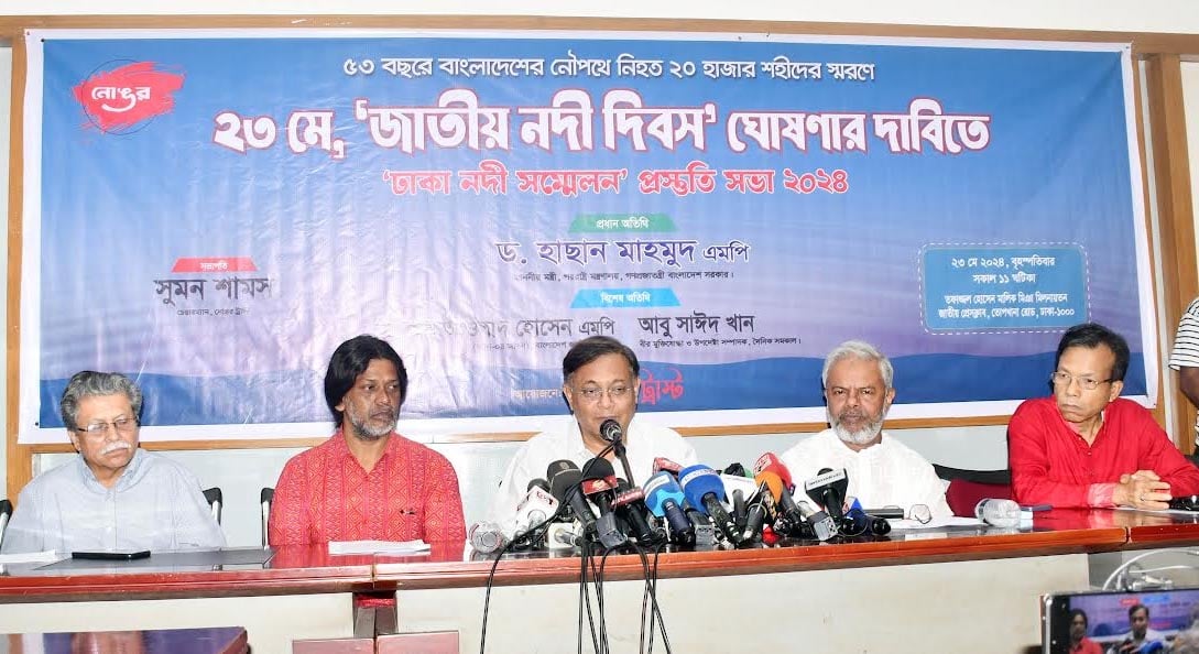 আজ বৃহস্পতিবার দুপুরে রাজধানীতে জাতীয় প্রেসক্লাবে নদী ও পরিবেশ রক্ষায় ব্রতী সংগঠন ‘নোঙর ট্রাস্ট’ আয়োজিত ‘দেশের নৌপথে নিহত সব শহীদ স্মরণে ২৩ মে জাতীয় নদী দিবস ঘোষণার দাবি ও ঢাকা নদী সম্মেলন প্রস্তুতি সভা’য় প্রধান অতিথির বক্তব্যে তিনি এ সব কথা বলেন।