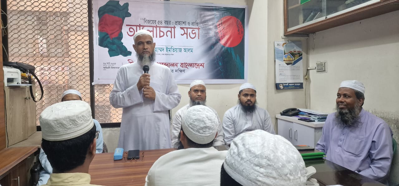 আজ বুধবার বিকাল ৪টায় ইসলামী আন্দোলন বাংলাদেশ ঢাকা মহানগর দক্ষিণ আয়োজিত “স্বাধীনতার ৫৪ বছর : প্রত্যাশা ও প্রাপ্তি” শীর্ষক আলোচনা সভায় সভাপতির বক্তব্যে তিনি উপরোক্ত কথা বলেন।