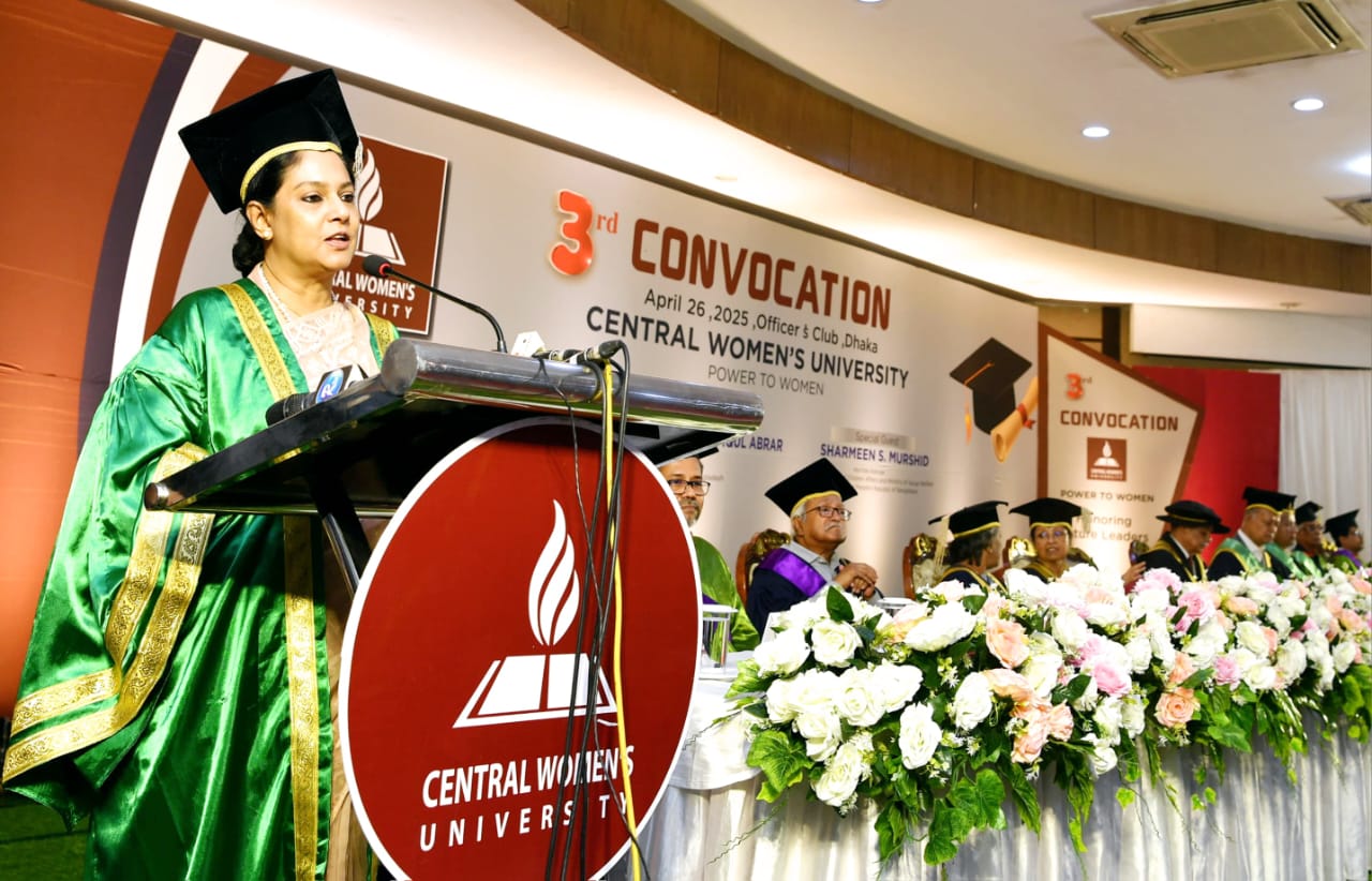 ২৬ এপ্রিল, শনিবার, রাজধানীর অফিসার্স ক্লাবে অনুষ্ঠিত সমাবর্তন অনুষ্ঠানে সেন্ট্রাল উইমেন্স ইউনিভার্সিটির তৃতীয় সমাবর্তনে সমাবর্তন বক্তৃতায় পরিবেশ উপদেষ্টা এসব কথা বলেন ।