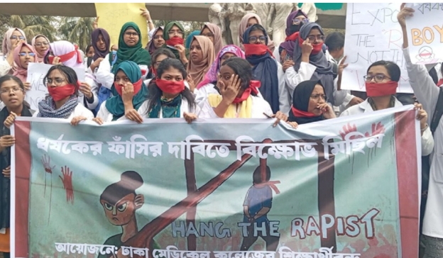 সারা দেশে অব্যাহত ধর্ষণের প্রতিবাদ ও ধর্ষকদের ফাঁসির দাবিতে বিক্ষোভ মিছি ও সমাবেশ করেছে ঢাকা মেডিক্যাল কলেজের (ঢামেক) শিক্ষার্থীরা। রবিবার (৯ মার্চ) ঢাকা বিশ্ববিদ্যালয়ের (ঢাবি) রাজু ভাস্কর্যের পাদদেশে এ বিক্ষোভ সমাবেশ অনুষ্ঠিত হয়।