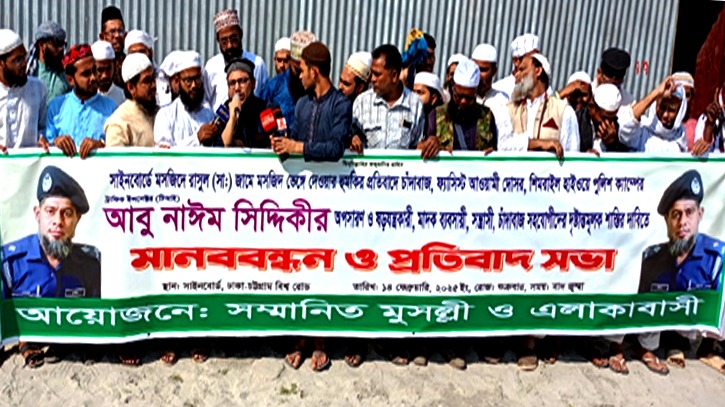 আজ ১৪ ফেব্রুয়ারি শুক্রবার জুম্মার নামাজ শেষে অনুষ্ঠিত ঘন্টাব্যাপী মানববন্ধন ও প্রতিবাদ সভায় সভাপতিত্ব করেন মসজিদে রাসুল (সা:) জামে মসজিদের খতিব মুফতি হাফেজ মাওলানা হাসান মুরাদ, এসময় বক্তব্য রাখেন, বৈষম্য বিরোধী ছাত্র আন্দোলন ডেমরা থানা শাখায় যুগ্ন আহবায়ক কেফায়েত উল্লাহ, মুখ্য সংগঠক জুয়েল হোসেন (ইয়াসিন), মুসলিম নগর সোশ্যাল ওয়েলফেয়ার ফাউন্ডেশন সভাপতি আশরাফুল আলম, ঢাকা ফ্রেন্ড ক্লাবের সভাপতি, সজল মোল্লা, নবজাগরণ ছাত্র সংঘ সভাপতি মোহাম্মদ মুহিবুল্লাহসহ কয়েকশত ধর্মপ্রাণ মানুষ।