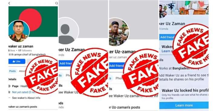সেনাপ্রধান জেনারেল ওয়াকার-উজ-জামানের নামে ভুয়া ফেসবুক প্রোফাইল খুলে বিভ্রান্তিকর তথ্য প্রচার করা হচ্ছে বলে জানিয়েছে আন্তবাহিনী জনসংযোগ পরিদপ্তর (আইএসপিআর)।