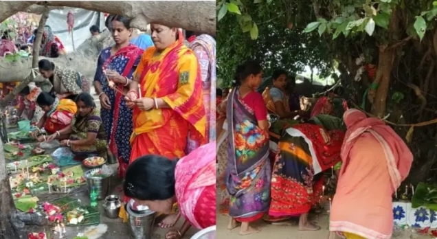 প্রতি বছরের মতো এবারও সিদ্ধেশ্বরী কালীতলায় সনাতন সম্প্রদায়ের মানুষ পূজার আয়োজন করেছে। নারীরা মৌসুমী ফল নিয়ে লাইন ধরে বটগাছের নিচে রেখে পূজা করছেন। পূজা শেষে তা প্রসাদ হিসেবে বিতরণ করা হচ্ছে।