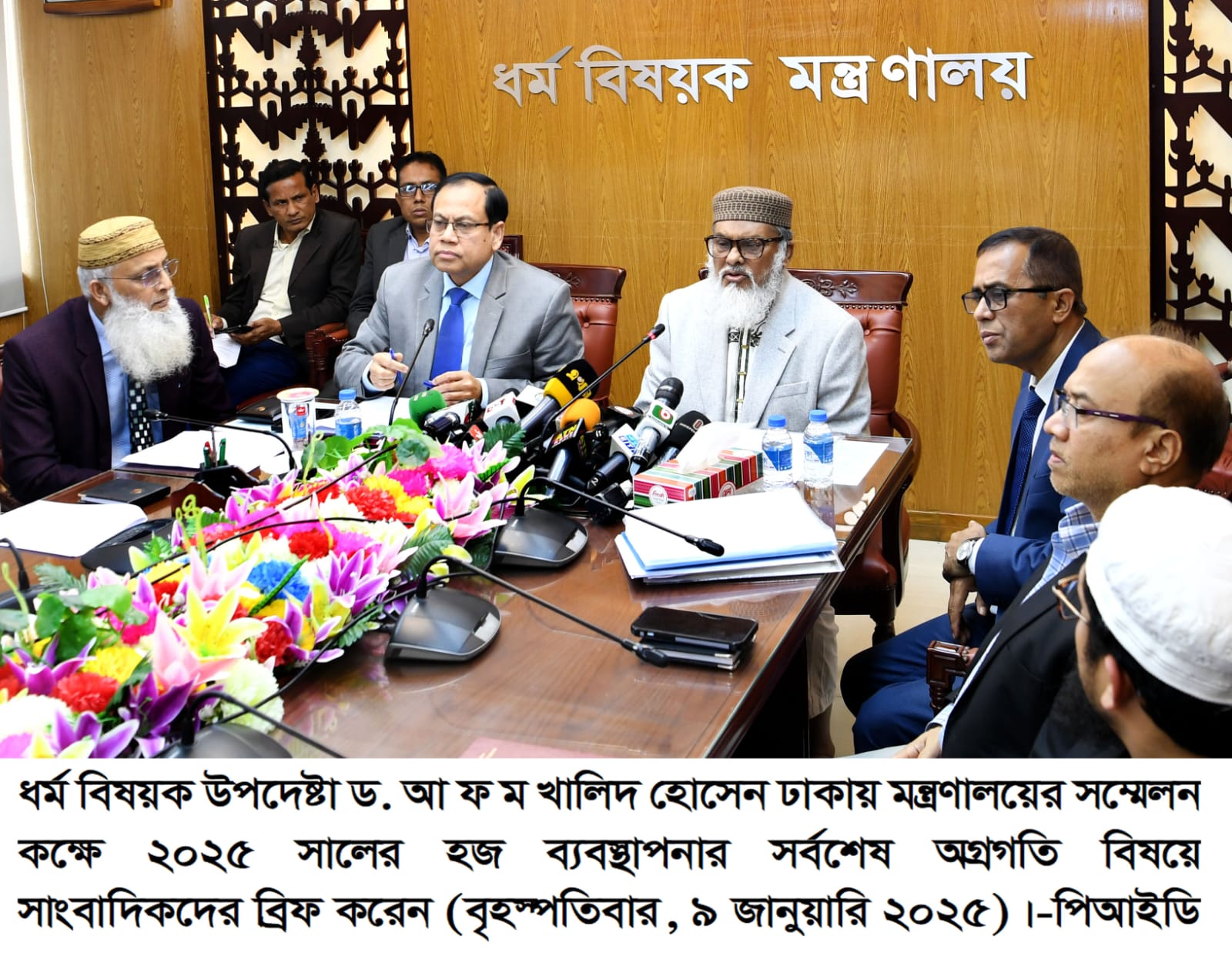 আজ বিকালে ধর্ম মন্ত্রণালয়ের সভাকক্ষে ২০২৫ সনের হজ ব্যবস্থাপনার সর্বশেষ অগ্রগতি বিষয়ে প্রেস ব্রিফিংয়ে তিনি এসব কথা বলেন।