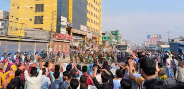 গাজীপুরের টঙ্গীর হোসেন মার্কেট এলাকায় এক পোশাক তৈরি কারখানার শ্রমিকরা বেতন ও ঈদ বোনাসের দাবিতে মহাসড়ক অবরোধ করে বিক্ষোভ করেছেন