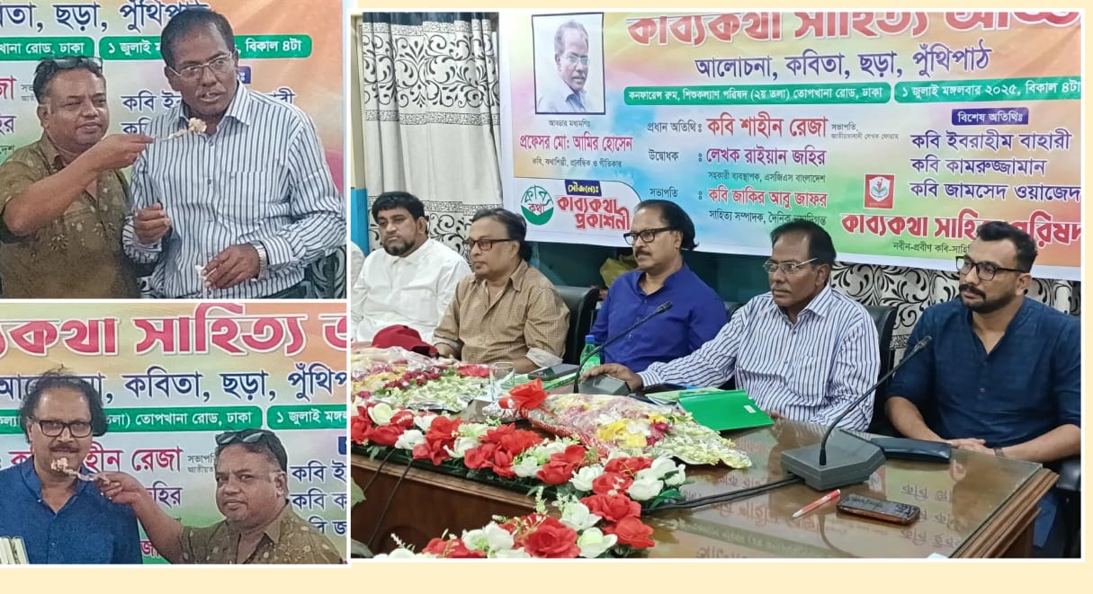 নবীন-প্রবীণ কবি-সাহিত্যিকদের মেলবন্ধন তৈরির প্রত্যয়ে এগিয়ে চলা জাতীয় সাহিত্য সংগঠন কাব্যকথা সাহিত্য পরিষদ কেন্দ্রীয় কমিটির আয়োজনে আজ ০১ জুলাই মঙ্গলবার বিকেলে শিশুকল্যান পরিষদে সাহিত্য সংগঠন কাব্যকথার উদ্যোগে জনপ্রিয় দুই কবি প্রফেসর আমির হোসেন ও কবি জাকির আবু জাফর এর জন্মোৎসব উদযাপন ও ১১৯ তম সাহিত্য আড্ডা অনুষ্ঠিত হয়।