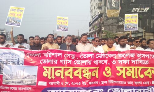 সিদ্ধিরগঞ্জে ভোলাবাসীর তিনদফা দাবিতে মানববন্ধন ও সমাবেশ